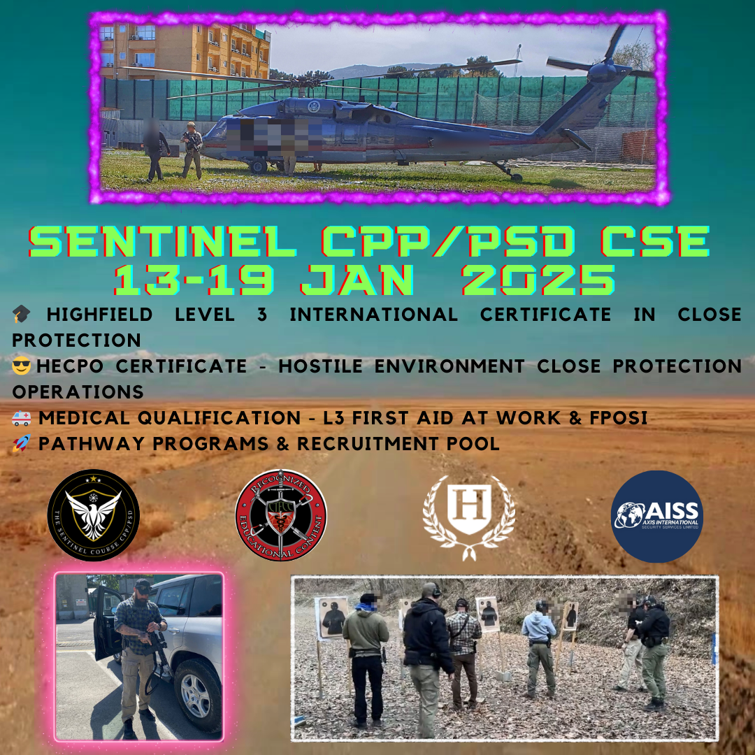Welcome to the AXIS International; Sentinel Course Close Personal Protection and High Threat PSD Program! Our intensive training program is designed to equip you with the skills and knowledge needed for a successful career as a close protection operative (CPO) or personal security detail (PSD) operator in high-risk environments.
